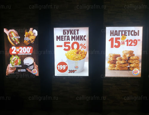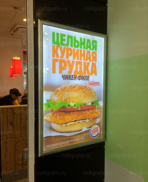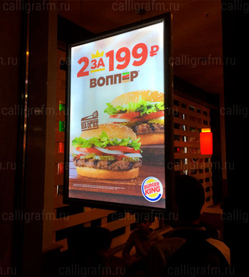 Как часто будет меняться изображение? Если Вы планируете часто менять информацию, например проводить недельные акции или добавлять новые блюда в меню, то, возможно, следует обратить внимание на фреймлаты или магнетики, они позволяют сменить рекламное полотно буквально в течении пары минут при минимальных трудозатратах. В других случаях отлично подойдёт кристалайт. Смена изображения займет чуть больше времени, но его изящный внешний вид полностью компенсирует эту работу.